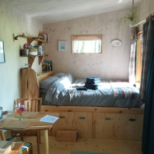 We have used natural and organic materials to eco renovate the bungalow and installed renewable energies such as solar PV, solar hot water and biomass heating, as well as improvements to reduce our energy consumption and carbon footprint. We try to reduce single use plastic as much as possible, through reusing and recycling, but also buying food in bulk from local suppliers such as Highland Wholefoods workers co-operative and Let’s Go Lentil, a packaging free food company.